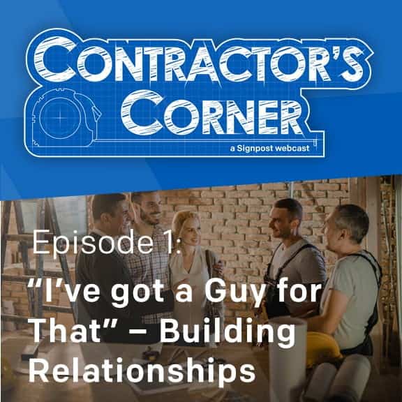 In the series premiere of the new Signpost webcast “Contractor’s Corner,” our own VP of Marketing Laura Nelson sat down with Michael Gogan of CompanyCam to chat about the value of building business relationships and looking beyond traditional “networking.”